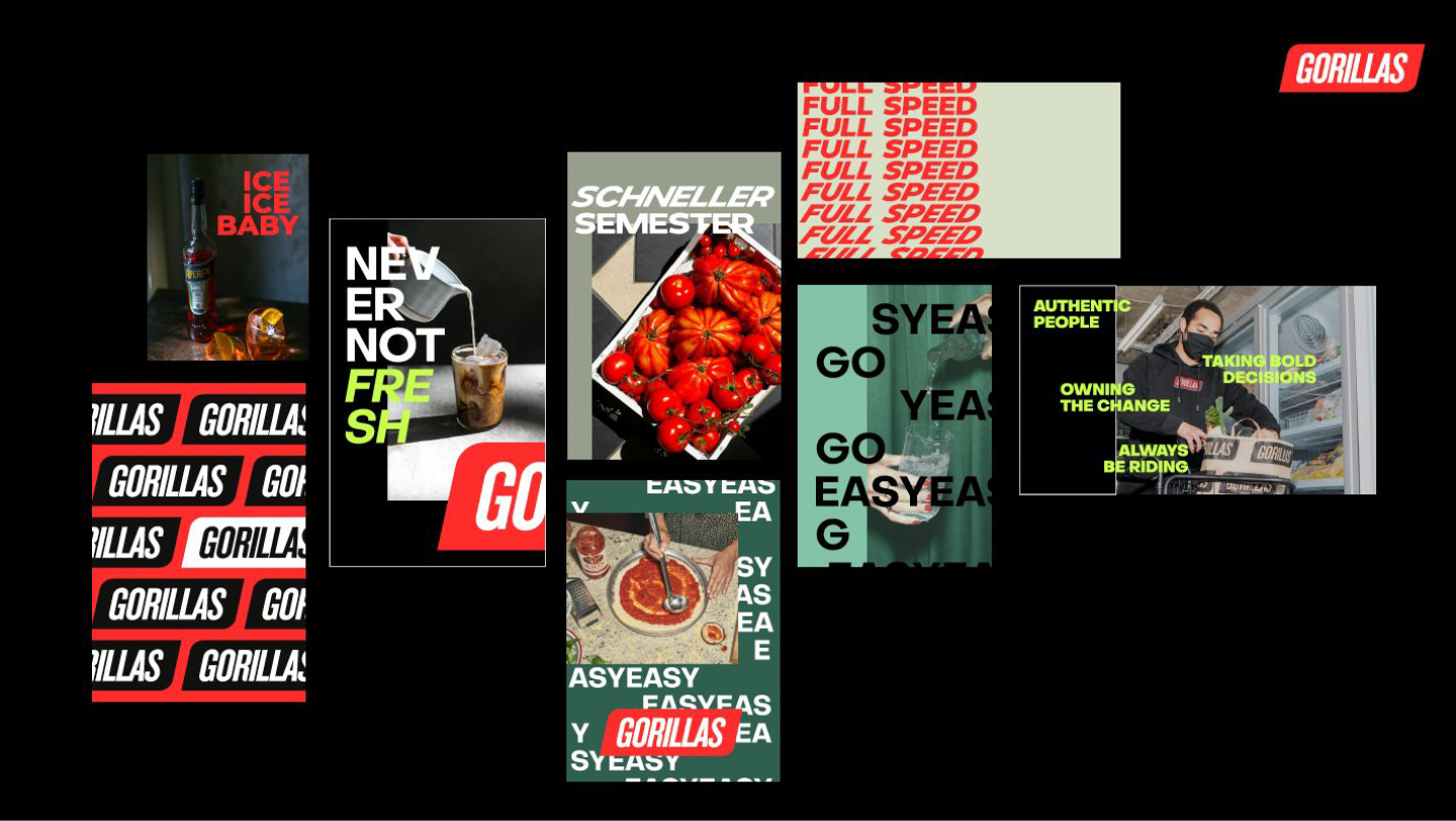 The Gorillas delivery service was rapidly growing in Europe and in need of a brand refresh. We created a consistant feel and upgraded the brand identity by introducing new key colours, guidelines, templates and a new font.